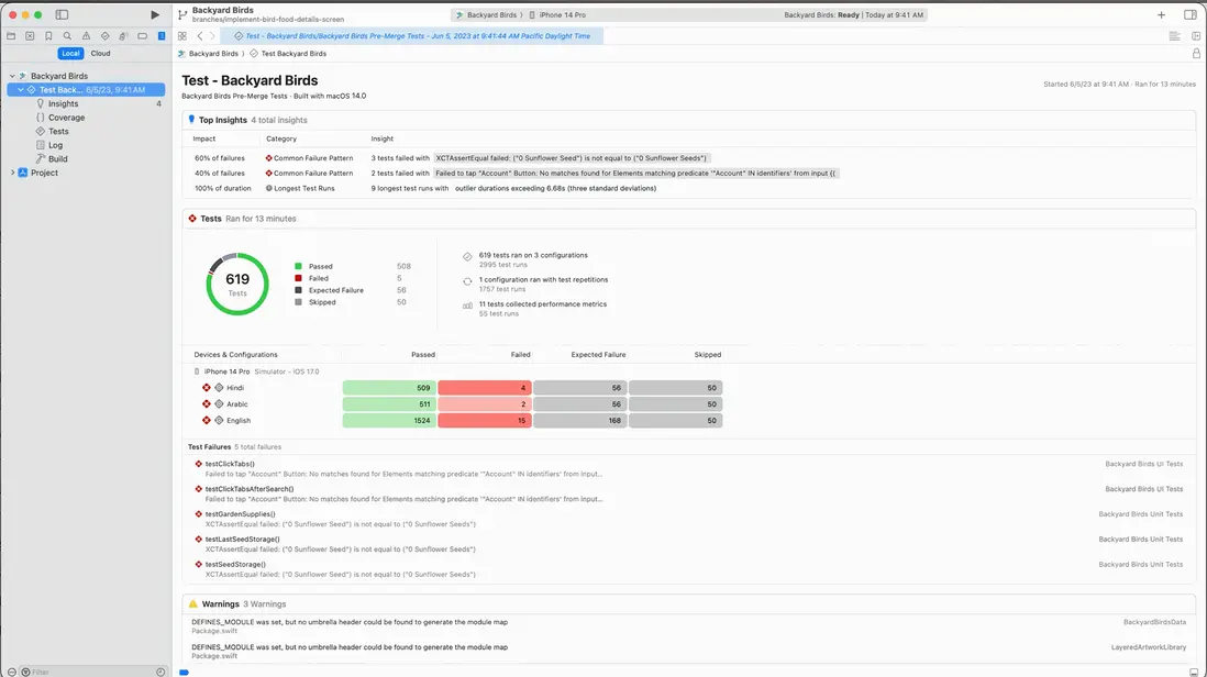 Apple 對新的測試面板使用Swift 進行了重寫,提速了45%,下圖案例列出了測試計劃中的測試用例。