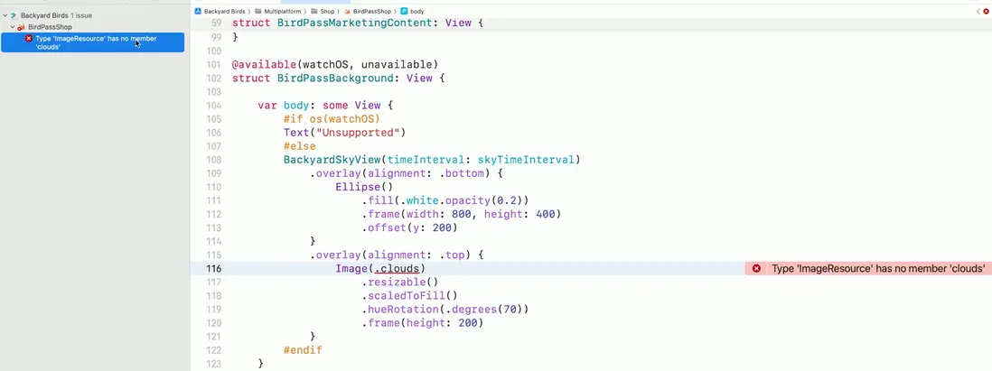 這是因為此前資產的名稱是 "clouds", 現在,編譯器提示你修改它為 "MultipleClouds"。