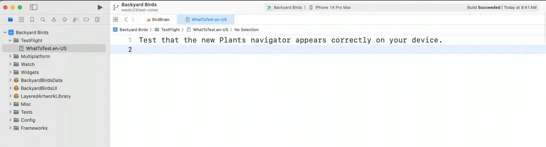 你可以給 TestFlight 的包添加一些附屬的備註信息,例如需要測試哪些內容的説明,這些信息會被展示給獲取 TF包的測試者。