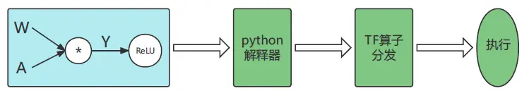 動態圖採用命令式編程範式,即編譯與執行同時發生。動態圖採用前端語言的解釋器對用户代碼進行解析,然後利用TF框架的算子分發功能,使得算子立即執行並向前端返回計算結果。當模型接收輸入數據後,TF開始動態生成圖拓撲結構,添加輸入節點並將數據傳輸給後續節點。如果動態圖中含有條件控制邏輯,會立即計算邏輯判斷結果並確定後續數據流向,因此動態圖完整的拓撲結構在執行前是未知的。另外,當模型根據新的batch訓練時,原有的圖結構則失效,必須根據輸入和控制條件重新生成圖結構。