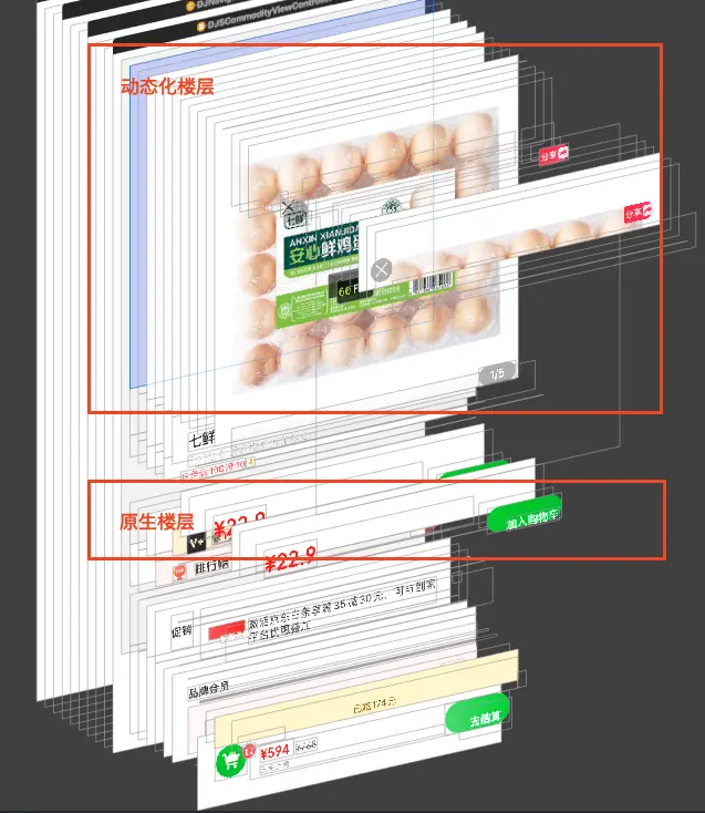 有了通用樓層,我們就開始了下一步的改造,最終的目的是實現全頁面動態化下發,這也是我們團隊對於動態化改造的新理解:全頁面的所有樓層均支持動態化下發,原生樓層與動態化樓層共存,由數據來驅動,靈活控制樓層的展示形式,另外還可以由配置平台設置開關,控制動態化樓層的降級。