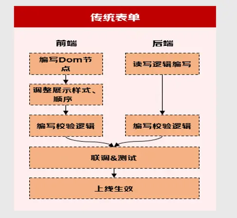 區別於傳統表單前後端配合聯調的開發實現方式,動態表單通過一種基於元數據管理的配置化方法來實現表單的動態生成,並能根據配置自由增改刪指定字段。實現特定需求的自助化。
