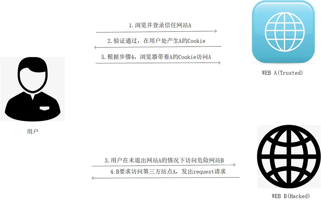 跨站請求偽造(Cross-site request forgery,簡稱CSRF),攻擊者利用受害者身份發起了HTTP請求,導致受害者在不知情的情況下進行了業務操作,如修改資料、提交訂單、發佈留言或評論等