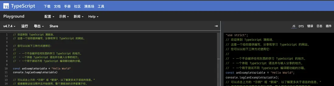 TypeScript 開發團隊提供了一款非常實用的在線代碼編輯工具——TypeScript 演練場