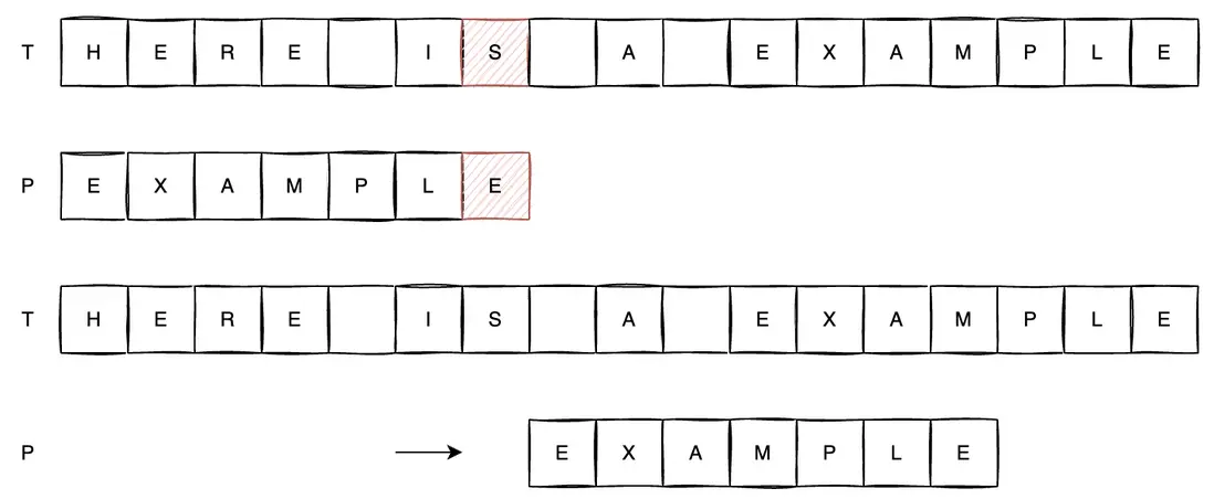 一個比較常見的字符串匹配方法工作原理如下。在一個大小通常等於m的窗口幫助下掃描文本。首先將窗口和文本的左端對齊,然後將窗口的字符與文本中的字符進行比較,這一特定的工作被稱為嘗試,在完全匹配或不匹配之後,將窗口移到右側。繼續重複同樣的過程,直到窗口的右端超過文本的右端,一般稱為滑動窗口機制。