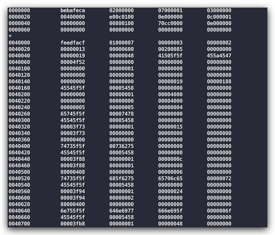 注:使用 od -tx1 /tmp/binary.bin 可以根據需要輸出二進制、八進制或者十六進制的內容