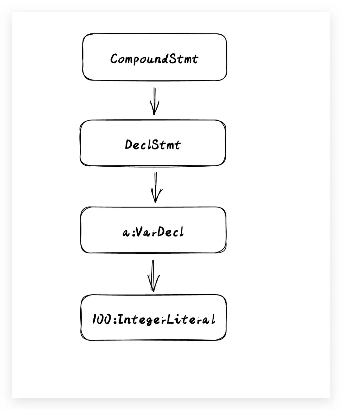 對於語義分析生成中間產物的過程,也可以通過 Clang 的編譯命令查看,具體如下: