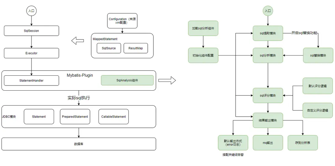 部門內部,目前大部分數據庫框架採用的mybatis,然後基於mybatis本身的實現機制中,開發一個mybatis組件,可以自動對運行的sql進行提取和分析,定製一套默認的分析規則,讓sql在開發環境和測試環境執行的時候,就能夠做初步的評估,把有問題的慢sql在這個階段暴露出來;同時具備sql替換功能,在線上出現問題sql的時候,可以通過ducc配置快速完成對一個sql的在線替換,大大降低線上問題的止損時間。