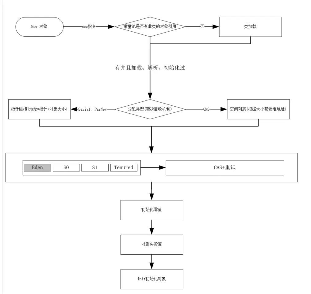 jvm碰到一個new指令,首先判斷改指令指向的常量池的類全名是否被加載、解析初始化過,如果沒有則進行類加載,參考類文件加載