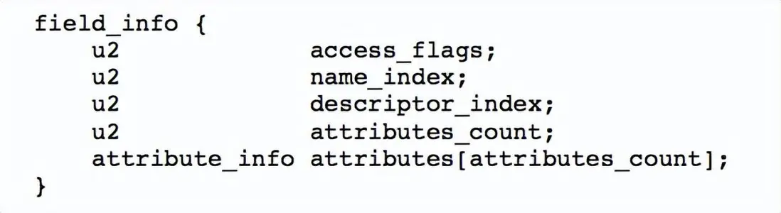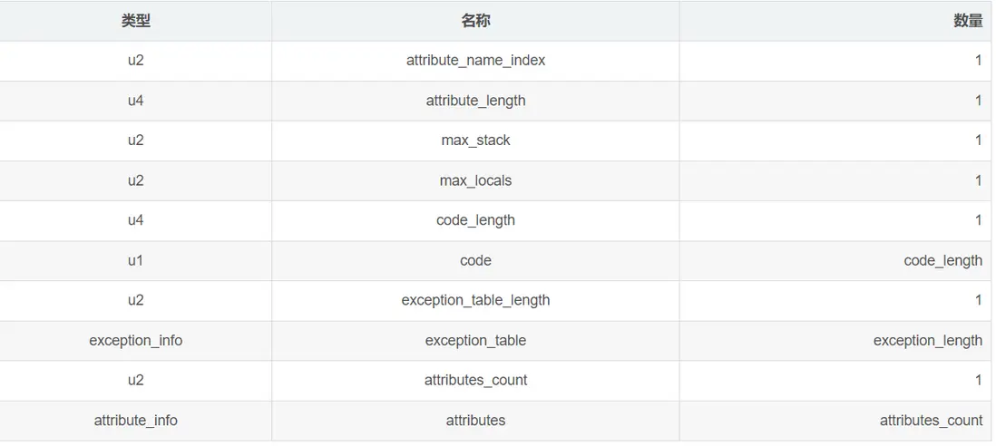 Class類文件是緊湊、順序、無空隙的,魔數(MagicNumber)、Class文件版本(Version)、常量池(Constant\_Pool)、訪問標記(Access\_flag)、本類(This\_class)、父類(Super\_class)、接口(Interfaces)、字段集合(Fields)、方法集合(Methods )、屬性集合(Attributes)。其中因為java多繼承所以interfaces接口類型為數組;attribute_info則是方法表中定義的code索引,指向具體的方法體字節碼。如圖1所示。