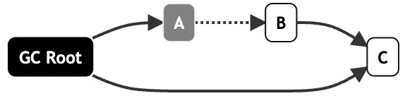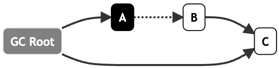 理論上,C仍然是可達對象,不應被清除,而B不可達,應當被清除。