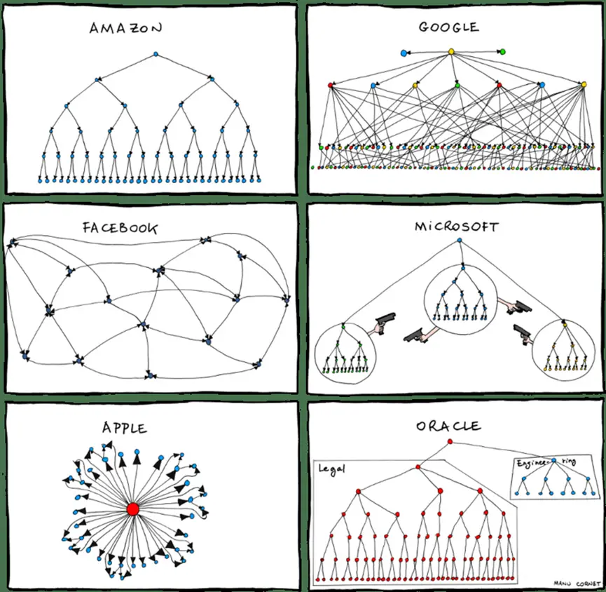 為了直觀理解,我們借用一張流傳甚廣的圖來理解一下組織結構: