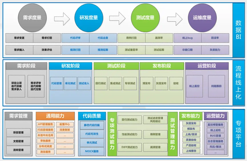 最終按照軟件交付流程,將產研測運等核心節點如法炮製,最終形成體系化的解決方案,如下圖:
