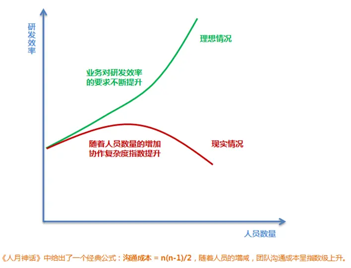 系統越複雜,越需要增加人手,人手越多,溝通成本也呈指數增長。分而治之便是大多數公司選擇的解決方案。分不同的層級,分不同的小團隊,讓團隊內部完成自治理,然後統一對外溝通。