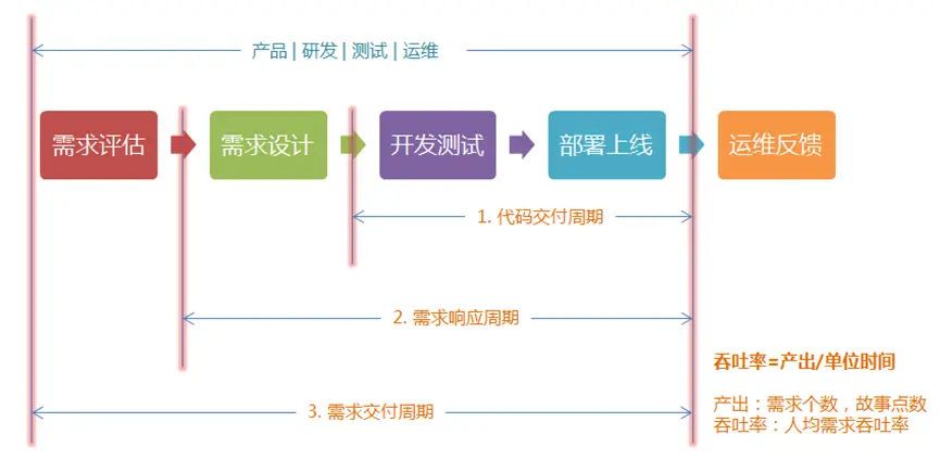 舉個例子,拿軟件漏測率高,導致線上事故頻發的現象來説。先從整個需求交付流程來看,整個產品迭代的節奏如下圖:
