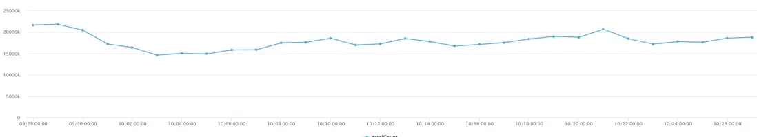 由上可以看出,合同每日的調用量比較平均,主要集中在9點到12點和13點到18點,也就是上班時間,整體調用量較高,基本不存在調用暴增的情況。