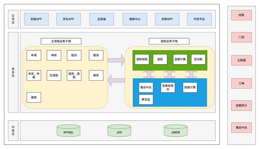 退款業務強耦合到售後系統中,並且業務代碼分散到各個業務層,嚴重缺乏系統的領域邊界和分層設計,重構後退款業務邏輯不強依賴售後核心業務邏輯,做到可以獨立部署。