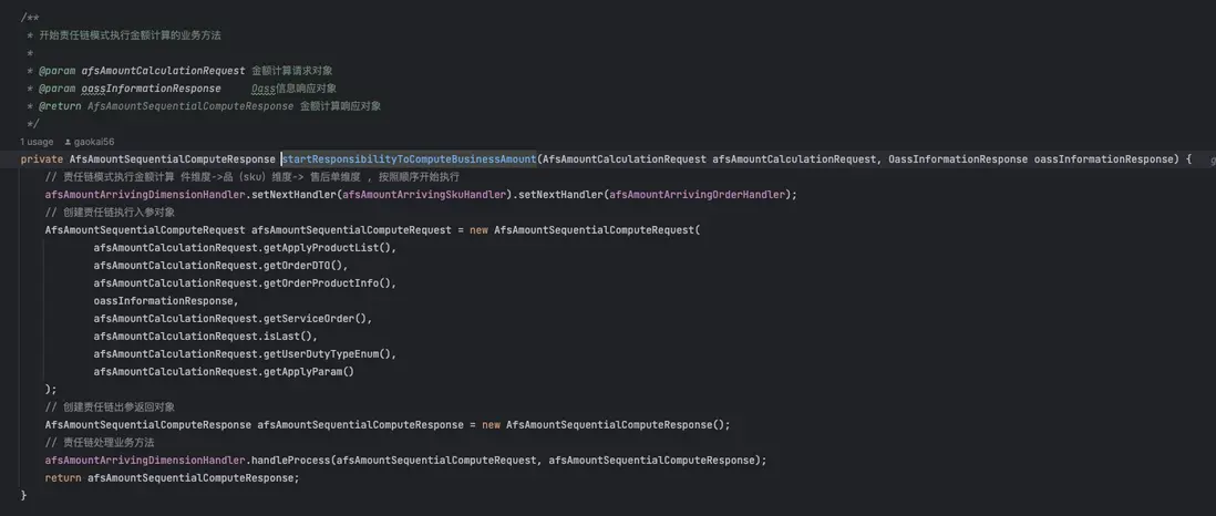 其中金額計算的核心則採用的是責任鏈業務進行計算