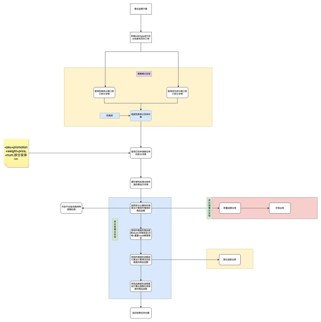 在件維度、sku維度針對不同的業務又採用了責任鏈模式進行金額計算