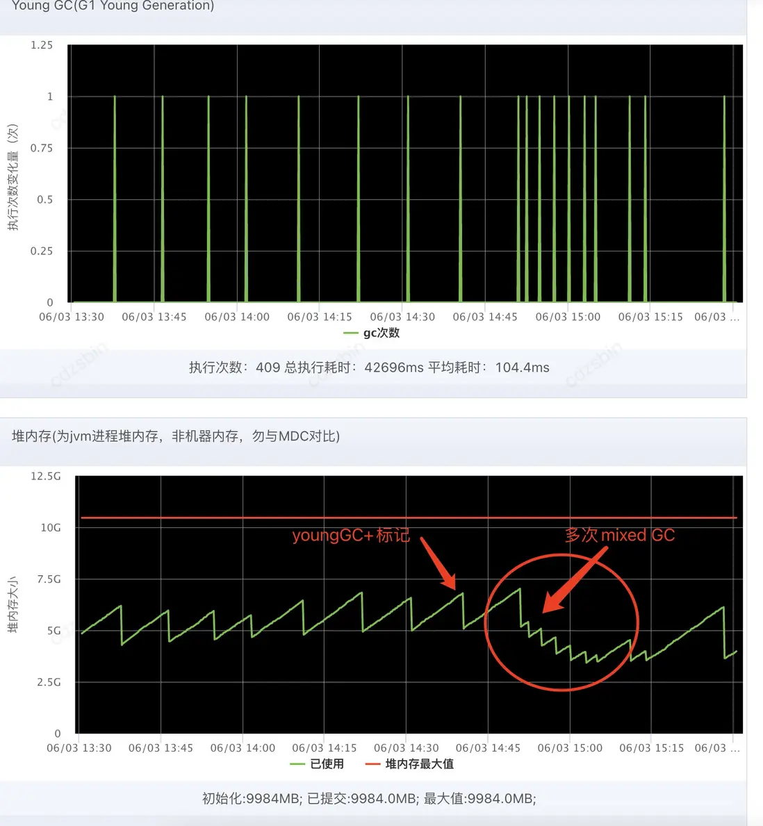 疑問3:監控中為啥出現了多次mixed GC, 而且間隔還如此的短