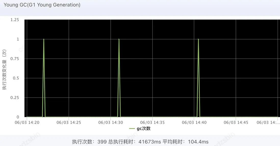 這裏有個問題,因為系統工具ump對jvm 的監控,只關注young gc & full gc, 遺漏了G1的混合GC, 導致直接通過系統監控未及時發現GC過長的問題。到後面下載了gc日誌,最終分析得到了 GC時間超過3.7秒的監控結果,這也是問題的根源。