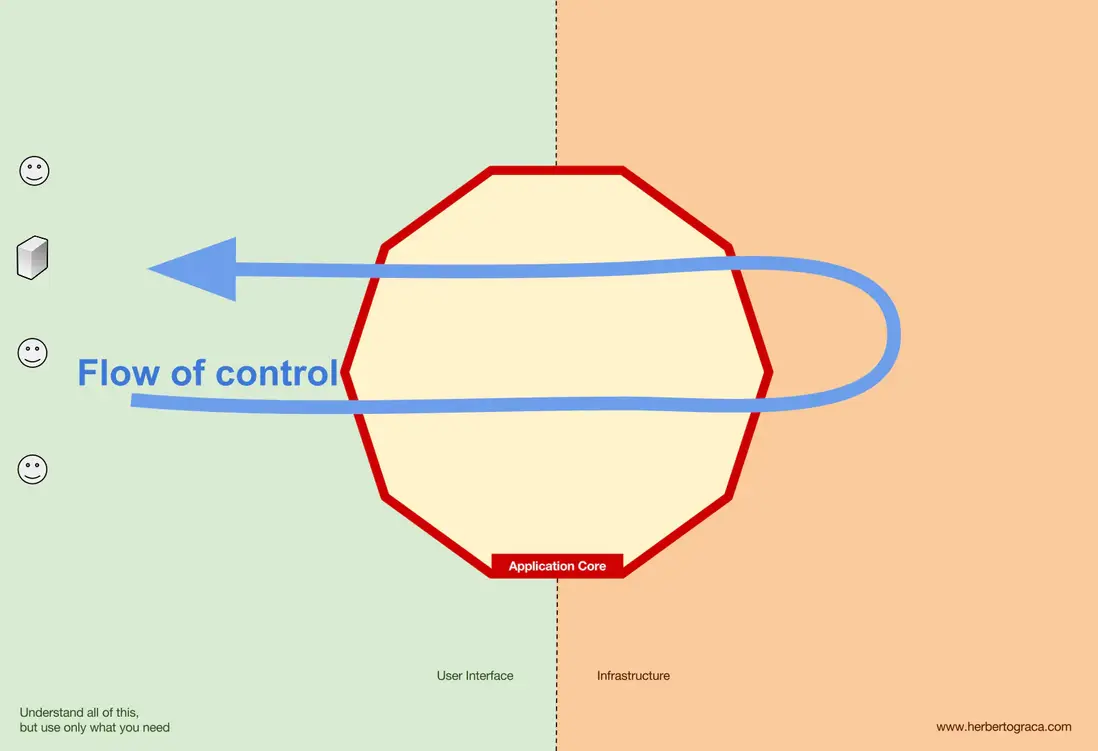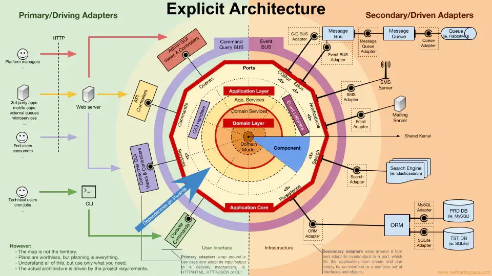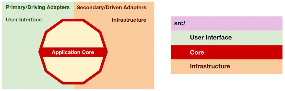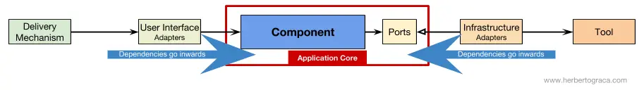 如你所見,兩種情況下,所有跨越應用核心邊界的箭頭——依賴——都指向內部。如前所述,這是端口和適配器架構、洋葱架構以及整潔架構的基本規則。