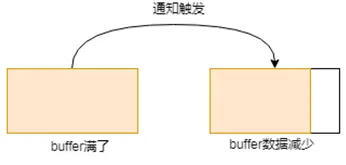 - buffer滿了,這時候發送出去一些數據,數據變少,此過程會觸發通知。