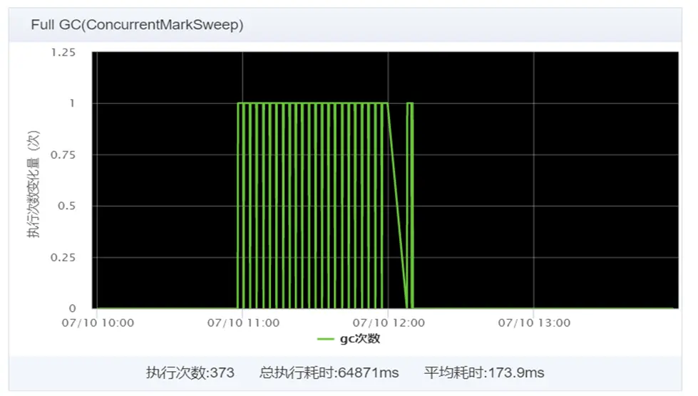 第一:登錄公司的UMP監控平台(開源監控可以參考:【Prometheus+grafana監控】)查看該機器的系統指標,發現確實在頻繁FullGC從11點持續到了11點半