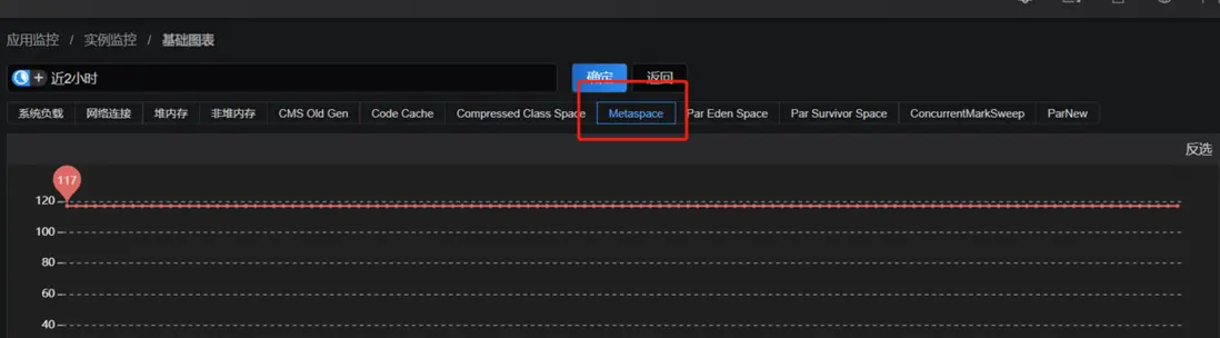 1、查看公司SGM監控平台(開源監控可以參考:【Prometheus+grafana監控】),元空間最大內存256M,FullGC發生前後為117M,排除Metaspace不足造成的原因