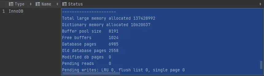 通過命令SHOW ENGINE INNODB STATUS可以觀察到如下內容: