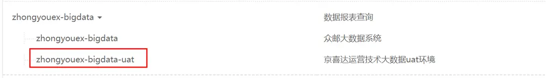 即需要在zhongyouex-bigdata-uat中查詢生產庫的數據。