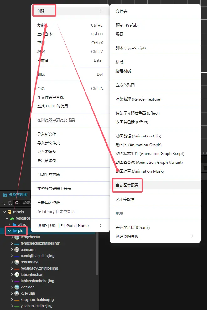 我們可以通過右鍵要使用自動圖集的圖片目錄-創建-自動圖集配置使用。