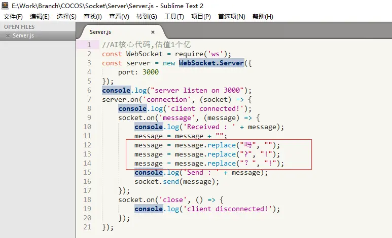語言用的是js,據説這個AI核心代碼價值1個億: