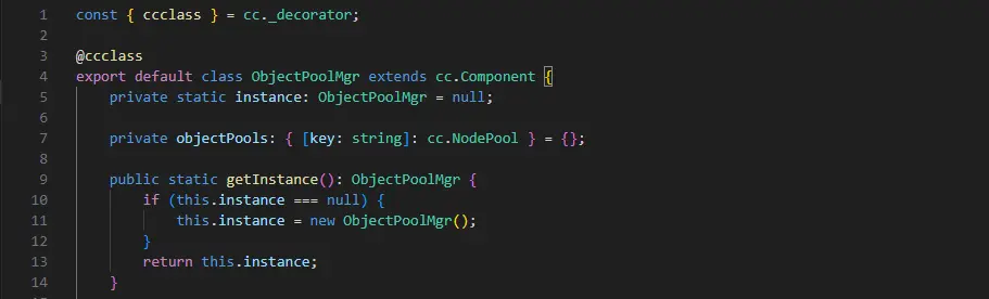 聲明ObjectPoolMgr繼承cc.Component,單例類。