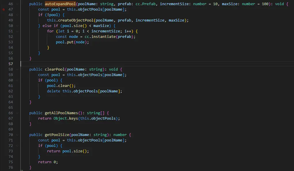 包括自動擴充對象池、清空對象池和獲取所有對象池的名字和獲取對象池大小。