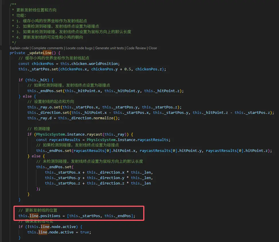 計算出來激光的起點和終點,對Line組件的positions進行賦值。