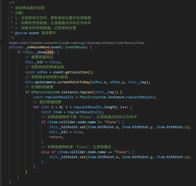 通過鼠標事件和射線檢測,確定激光的方向和目標。