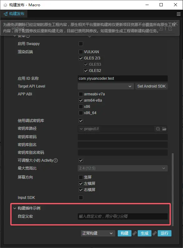 在builder.ts中,刪除不需要的代碼,添加一個自定義宏的輸入框,用於不同的平台輸入指定的宏,用;隔開。