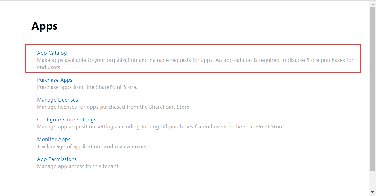 總結一下,SharePoint Online的應用程序目錄,就是用來上傳SPFx開發的app的,當我們開發完SPFx的App,上傳到App Catalog,然後環境中的網站就可以獲取到這些App。