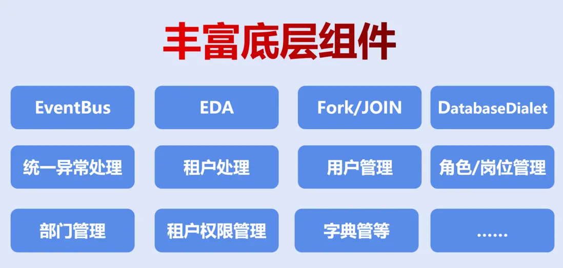 模塊化和插件化設計支持組件的二次開發與個性化定製,簡化複雜業務邏輯的實現,提升開發效率和系統擴展能力。
