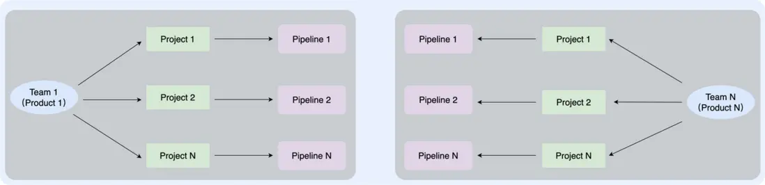 在企業內部,一種很常見的場景就是:不同團隊或者不同產品線都有自己獨有的項目,每個項目都有對應的 CI/CD 流水線,隨着項目的增多,流水線的數量也會不斷增加,一個企業內部有可能存在數百甚至上千條流水線。