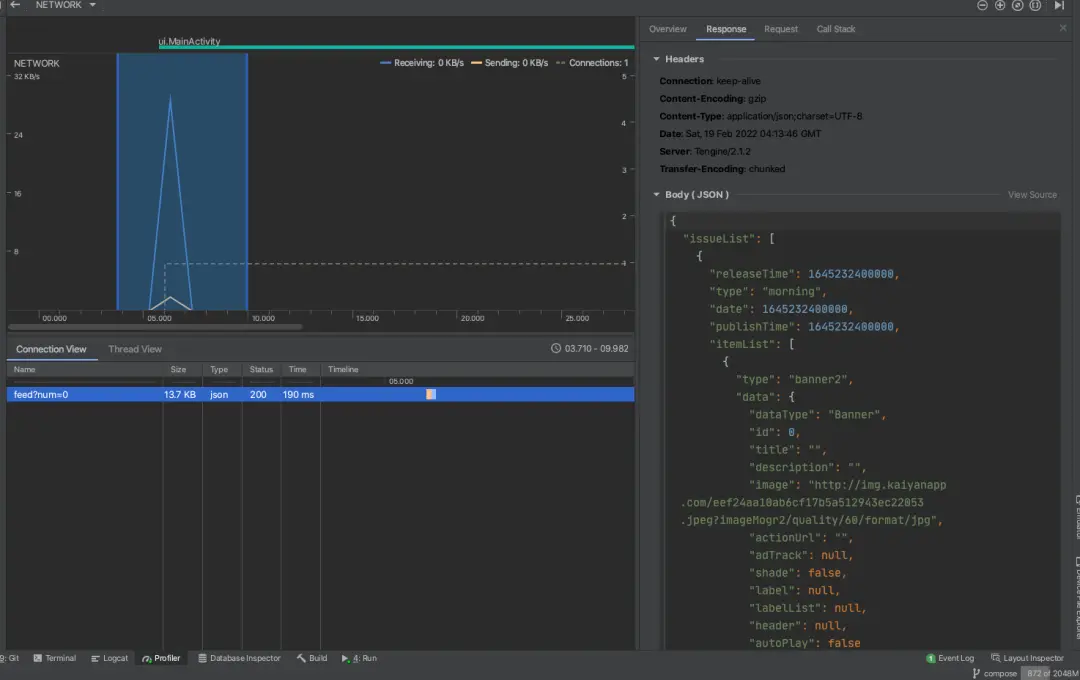 這樣我們就可以通過AndroidStudio的Profiler 輕鬆地抓取我們App 的網絡信息了。