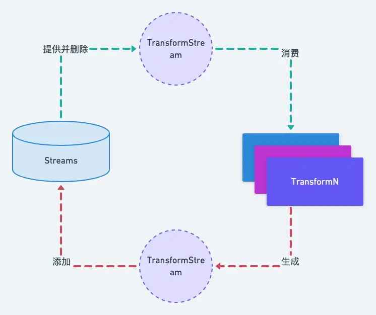 • 在處理過程中,每一個 Transform 的接受流都是接收到上一個 Transform 的輸出流,原始的文件流會經過很多 Transform 的處理。