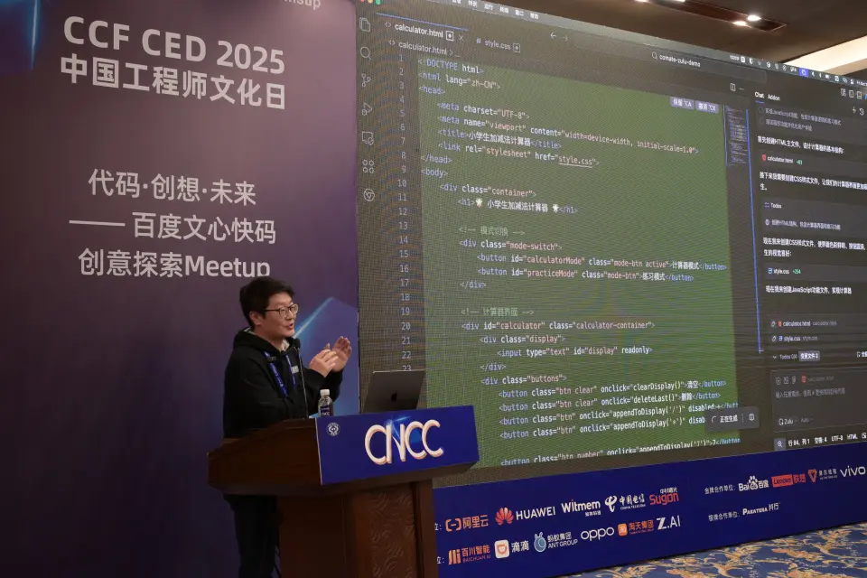 10月24日工程師文化日,CEDxCNCC百度文心快碼「創意探索Meetup」在哈爾濱圓滿落幕。作為2025CNCC中國計算機大會的分論壇之一,本次活動以“代碼·創意·未來”為主題,匯聚了數百位開發者與AI愛好者,共同開啓了一場“用代碼表達想象力”的AI Coding 英雄之旅,共同探索AI賦能下的全新編程範式。通過百度文心快碼團隊高級經理彭雲鵬和架構師徐曉強幹貨滿滿的分享,現場開發者們近距離體驗了文心快碼在代碼理解、智能補全、自定義智能體與多智能體協同開發等方面的最新能力,見證了AI從“工具”到“開發夥伴”的躍遷。