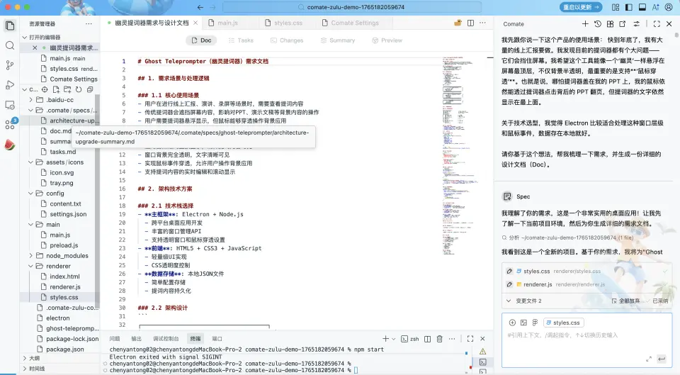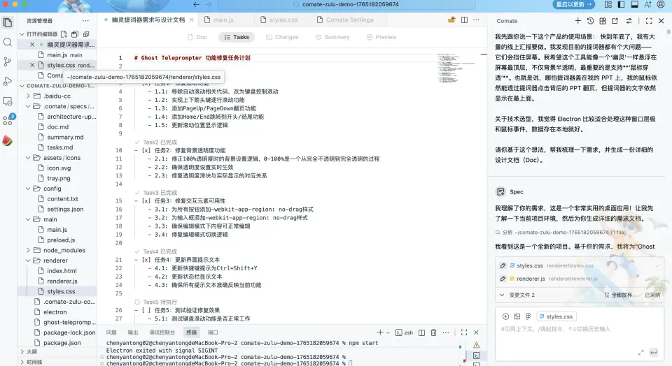 A: 強在“確定性”。 Zulu 在處理超大規模上下文時,偶爾會出現“跳躍性”思維。而 Spec 模式強制要求生成實現規格説明書。在 Spec 模式下,AI 會先列出:它打算改哪幾個文件、調用哪些現有的 API 路徑、如何處理邊界條件。簡而言之, Zulu 是“信任它能搞定”,Spec 是“看它計劃怎麼搞定,確認無誤再放行”。