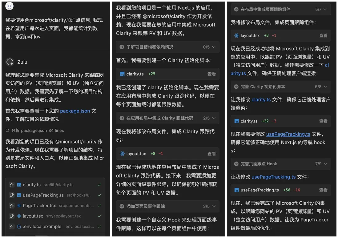由於需要統計用户使用數據,讓Zulu幫我接入了埋點功能,5min不到就幫我接入了clarity,真的很高效~