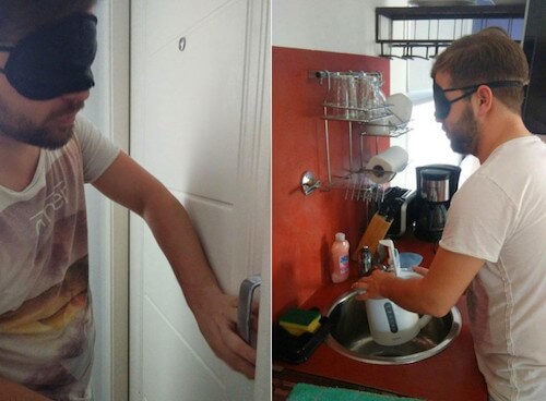 Think simple! You can plan and prototype your idea in 30 minutes, without actually needing visually impaired users to test with. During a prototyping exercise, we experimented with a very simple prototype of this product: We blindfolded one of our team members and faked the product by tapping on his waist to simulate the vibrations of the belt. It was an incredibly simple setup that let us carry out basic initial tests of a product idea and get immediate feedback.