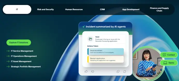 ServiceNow超越了傳統的ITSM範疇,提供了一個覆蓋HR、法務、財務等多部門服務交付的統一平台。在交付跟蹤方面,其強大的工作流引擎可以建模複雜的審批和協同流程,預測性智能能夠基於歷史數據預估解決時間,而虛擬代理技術則能自動處理大量常規請求。對於追求數字化運營轉型、希望統一管理所有內部服務交付的企業,ServiceNow提供了最完整的解決方案。