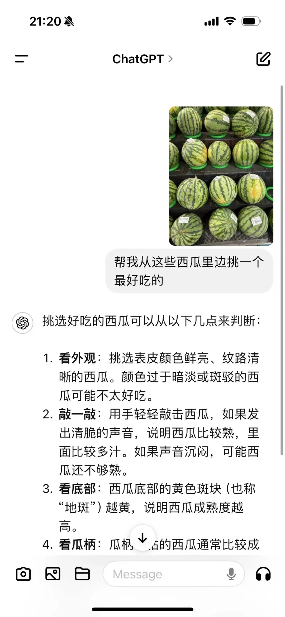 説到效率工具,ChatGPT 絕對是提高效率神器,從日常問題到開發、圖片生成、畫圖等等,哦,還可以幫忙挑西瓜🍉