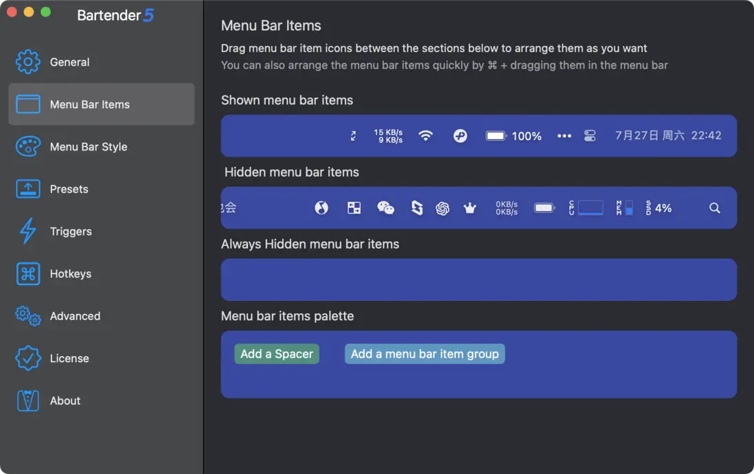 支持自定義顯示哪些 icon,配置哪些 icon 始終不顯示,哪些第二狀態欄顯示